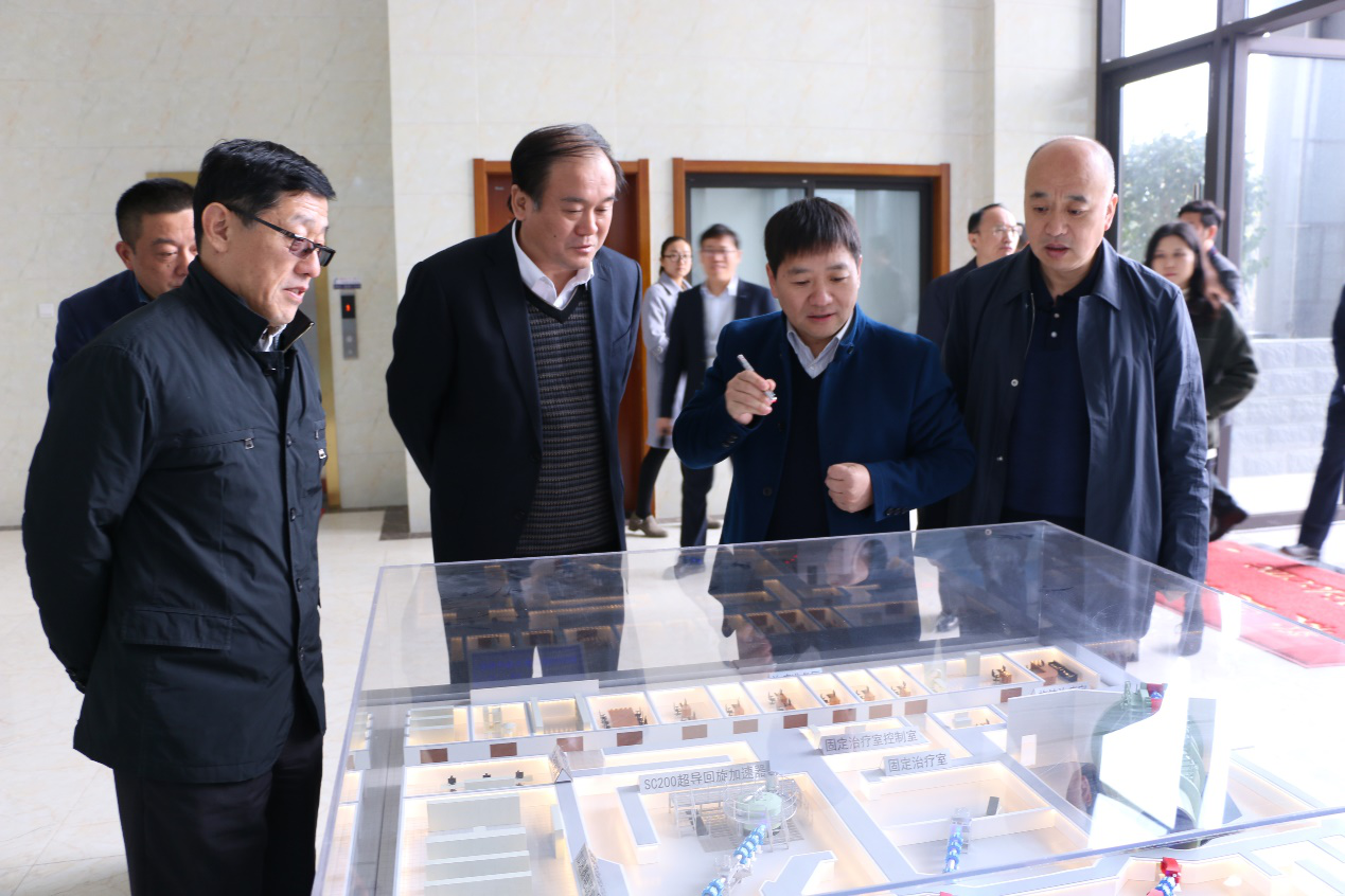 韓冰一行先后參觀了研發成果展示車間、裝配測試車間及引進和研發項目建設現場,聽取了研發項目和質子治療項目整體規劃介紹、工作進展匯報。韓冰對公司推動科技成果轉化做出的努力和研發取得的階段性成果表示肯定。