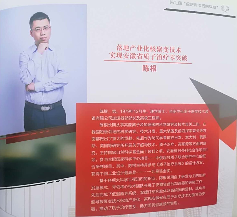 陳根同志是我公司加速器部部長(zhǎng)及高級(jí)工程師,長(zhǎng)期從事高能離子及加速器的科學(xué)研究及技術(shù)攻關(guān)工作,在我國(guó)短板領(lǐng)域的科學(xué)研究、技術(shù)開發(fā)、重大裝備及前沿探索攻關(guān)等方面都做出了重大的貢獻(xiàn)。先后作為訪問(wèn)學(xué)者前往日本、意大利、俄羅斯、美國(guó)等研究所開展關(guān)于超導(dǎo)技術(shù)、質(zhì)子治療、高頻源等方面的研究。基于各項(xiàng)大科學(xué)工程知識(shí)的積淀,采用自主研發(fā)為主的創(chuàng)新發(fā)展模式,他帶領(lǐng)核心技術(shù)團(tuán)隊(duì)開展了我省首臺(tái)加速器的研制工作,突破了我省在質(zhì)子治療技術(shù)方面零的突破,推動(dòng)了質(zhì)子治療普及,助力國(guó)民健康夢(mèng)的實(shí)現(xiàn)。
