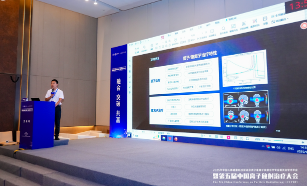 中科離子總經理陳永華教授在主會場作《超導質氦一體放射治療系統》專題報告,系統闡述公司在超導多粒子一體治療系統領域的最新突破,重點展示自主研發的超導質氦一體機 CAPRO-M 系統。該設備基于超導回旋加速器技術,可同步提供質子與氦離子雙束流,憑借散射小、半影銳利、拖尾碎片少等物理特性,既能提升腫瘤殺滅效果,又能顯著降低正常組織輻射損傷,尤其適用于兒童腫瘤等臨床場景。