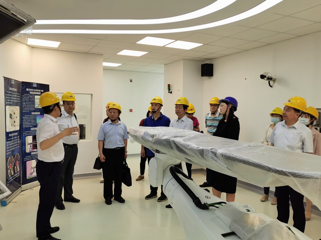 調研組實地參觀了SC200超導質子治療系統集成測試廠房,詳細了解項目規劃、定位、研發進展、工程建設等情況。調研組一行對公司在搶抓政策機遇、服務科技創新,以及國產質子設備惠及民生、降低治療成本等方面取得的進展給予充分肯定。
